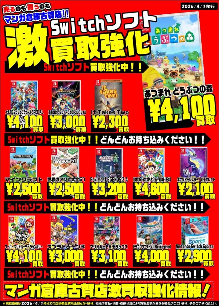 明日4/1からSwitch・Switch2ソフトの買取チラシ更新します‼…