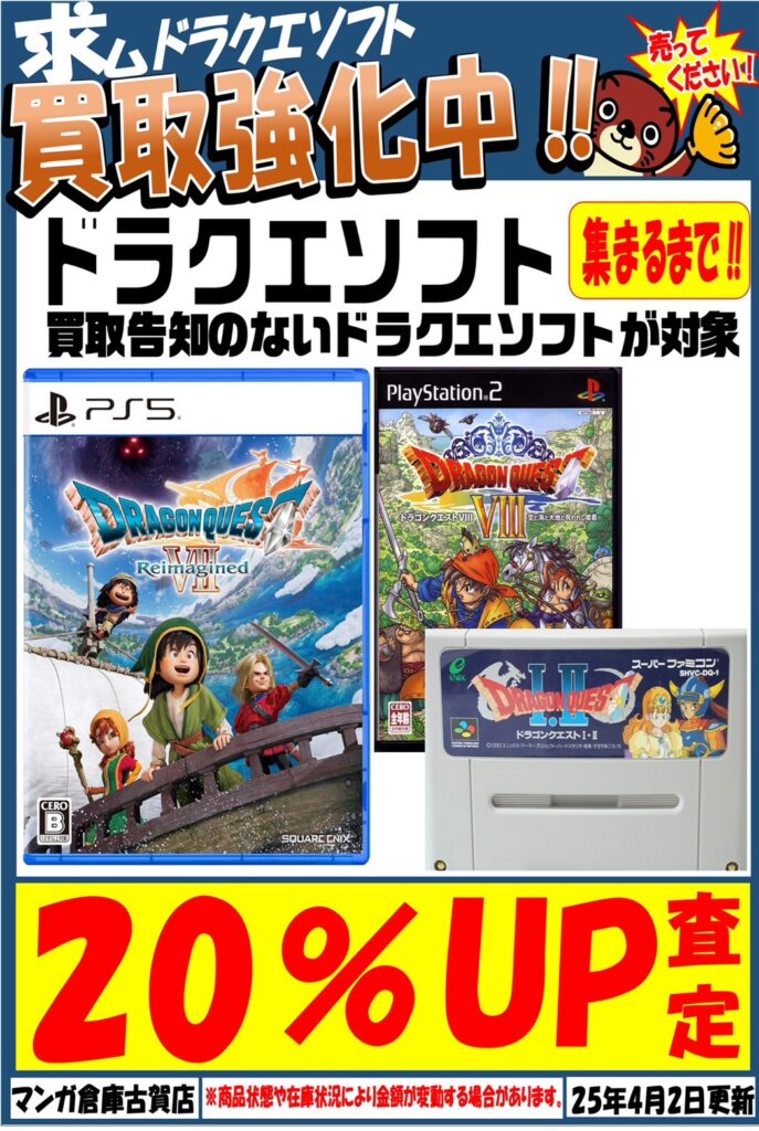 明日4/2からドラクエソフト買取20%UP査定を実施します‼️…