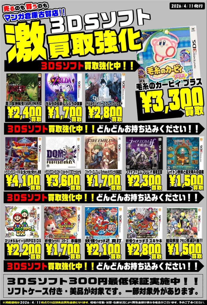 明日4/11から3DSソフト買取チラシを更新します‼️ たくさ…
