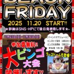PREV2025年 11月NEXT日月火水木金土26272829303112345678910111213141516171819202122■BLACK FRIDAY■23242526272829■BLACK FRIDAY■■大ビンゴ大会■30123456■BLACK FRIDAY■■大ビンゴ大会■ 【イベント一覧】 その他イベント■大ビンゴ大会■開催日: 2025年11月23日 3:00 PM★開催日時は画像をご確認ください★ その他イベント■大ビンゴ大会■開催日: 2025年11月30日 3:00 PM★開催日時は画像をご確認ください★ その他イベント■BLACK FRIDAY■開催日: 2025年11月20日 - 2025年11月30日★開催日時は画像をご確認ください★
