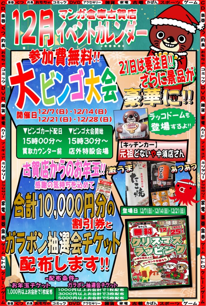 マンガ倉庫古賀店の12月イベントスケジュールはコチラッ! ▼参加費無料…