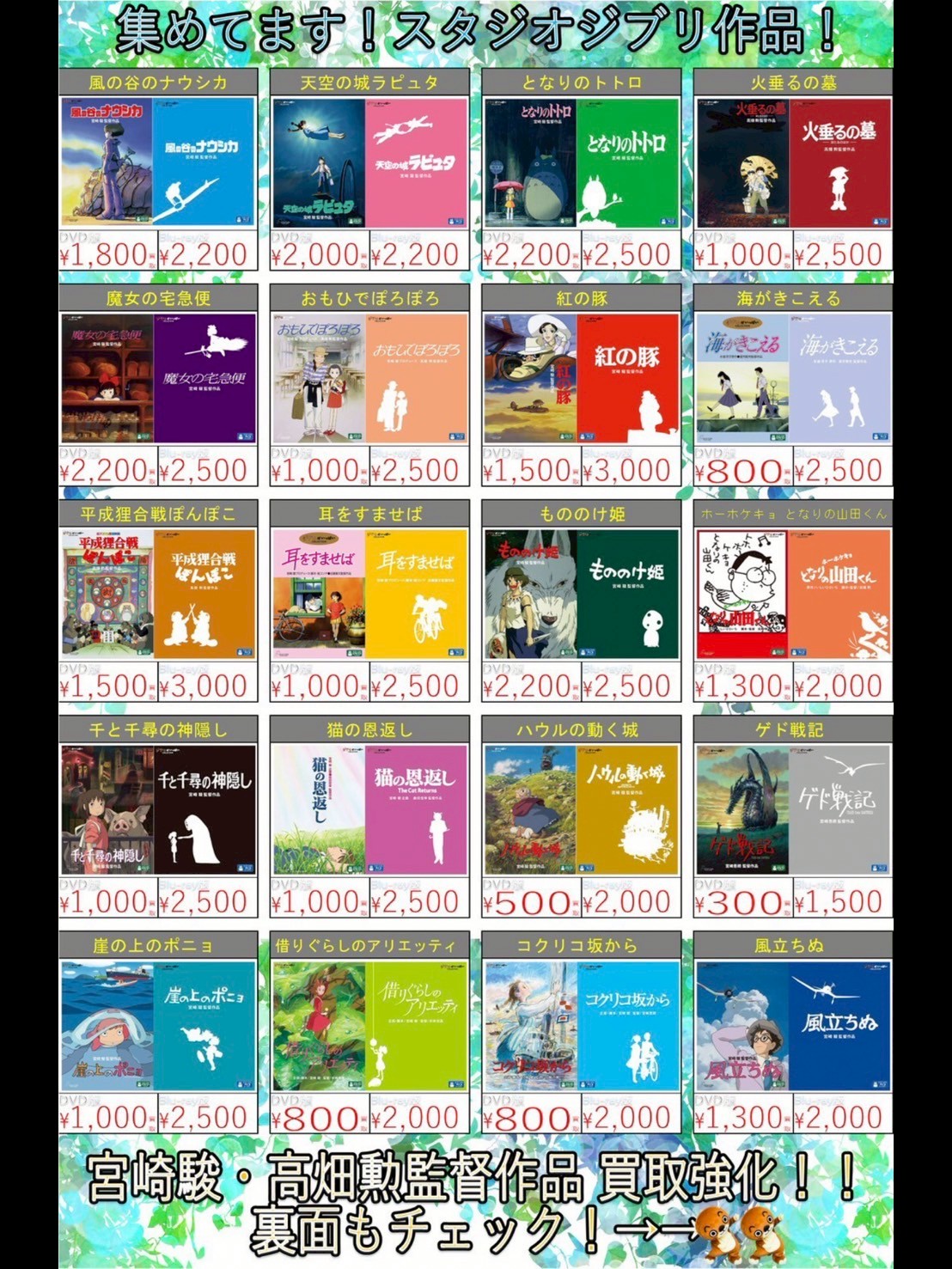 また宮崎駿、細田守、高畑勲、新海誠アニメーション監督作品も買取強化中🔥✨