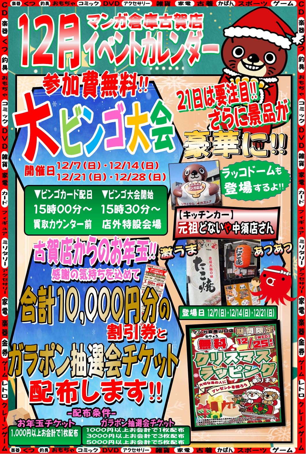 マンガ倉庫古賀店の12月イベントスケジュールはコチラッ!