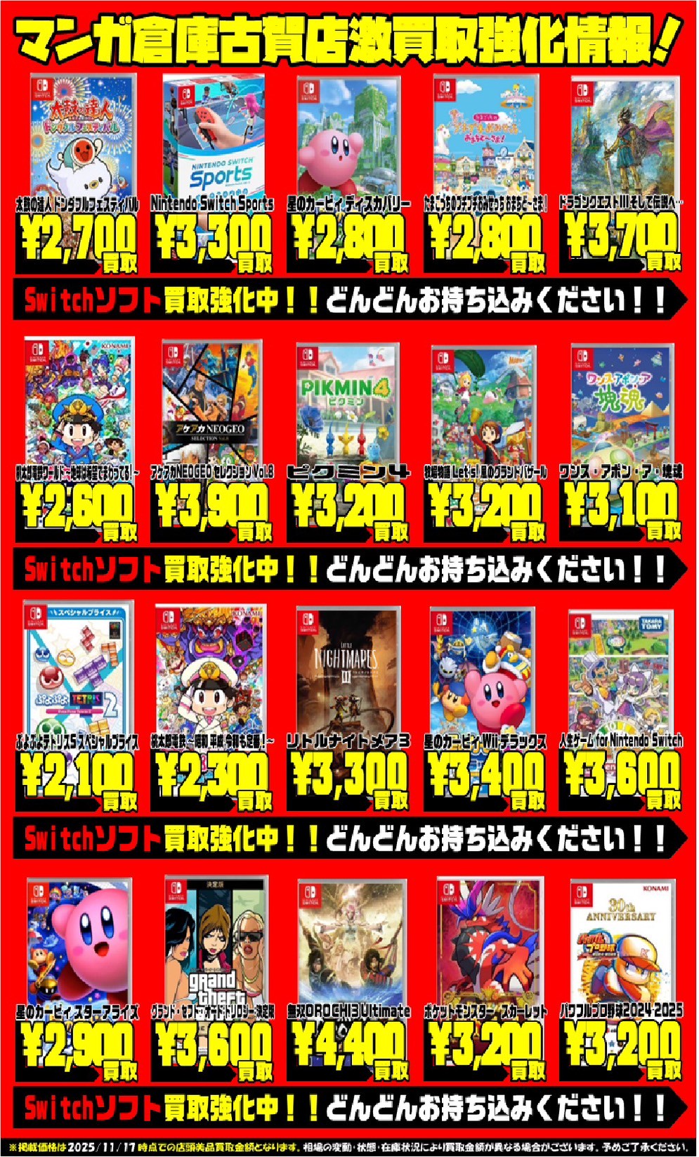 ゲームハード、Switchソフト買取チラシ更新しました‼️