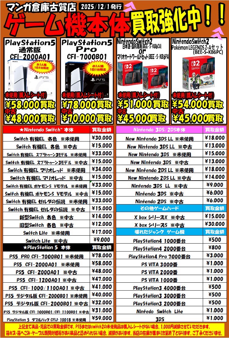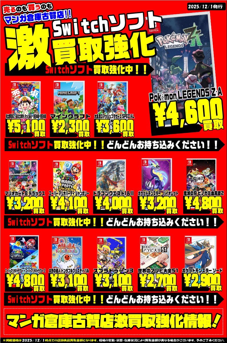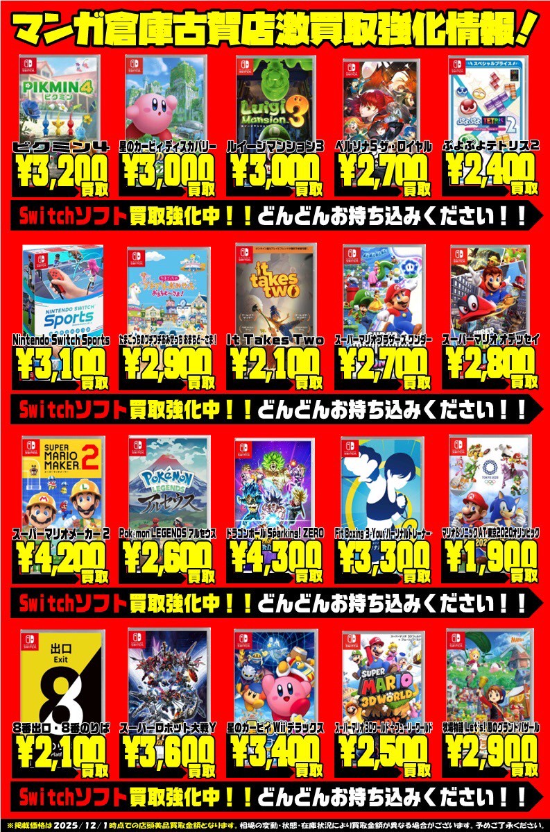 Switchソフト、ゲームハード買取チラシ更新!#福岡 #ゲーム #買取 買取情報 ゲーム 2025年12月1日 Switchソフト、ゲームハード買取チラシ更新しました‼️ ご来店をお待ちしております✨ 関連