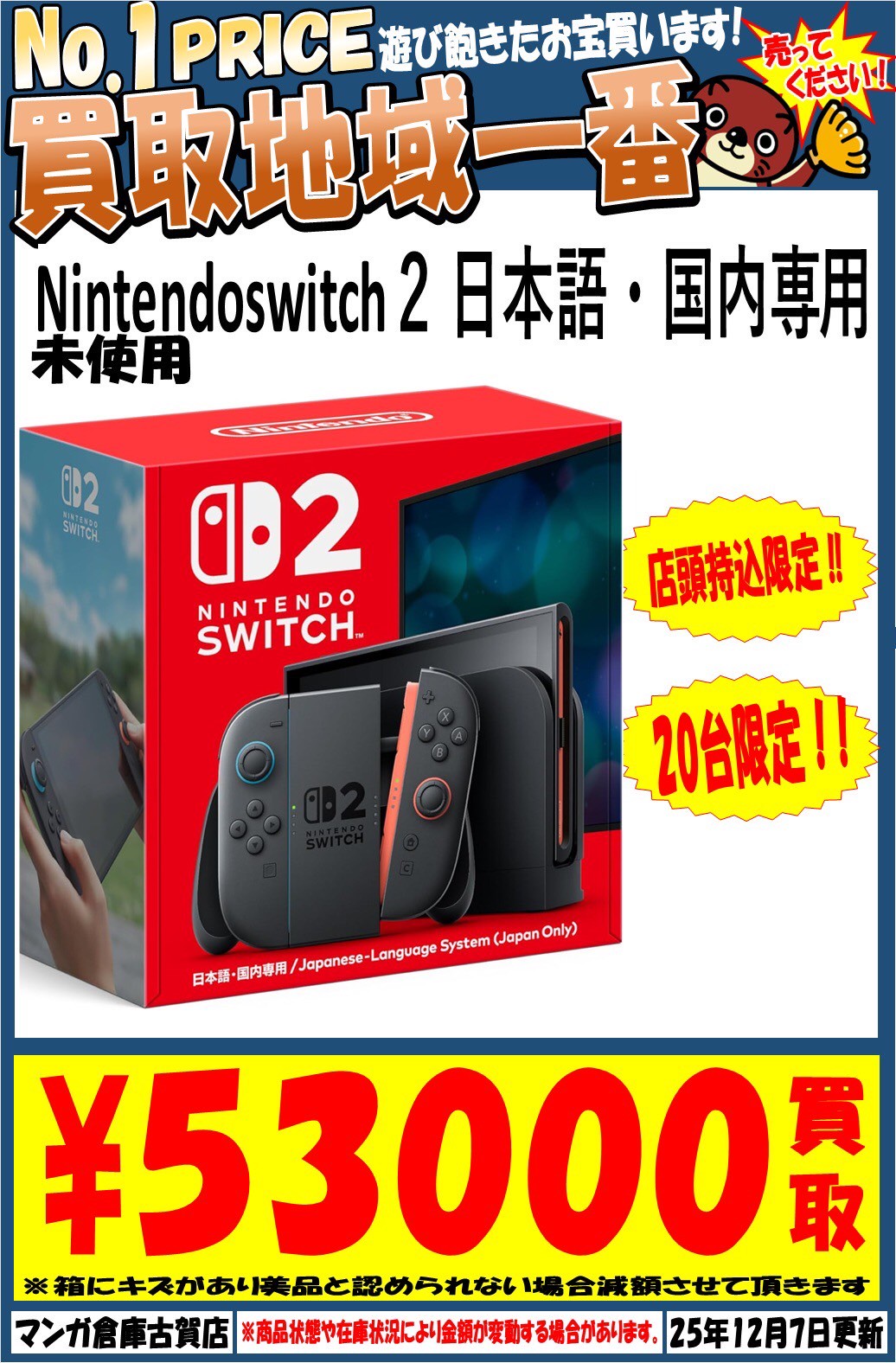 ゲームハード買取チラシ更新!#福岡 #ゲーム #買取 new 買取情報 ゲーム 2025年12月7日 ゲームハード買取チラシ更新しました‼️ ご来店をお待ちしております✨ ※2025/12/7 現在の価格となります。 在庫状況などによってお値段が変動いたします。予めご了承ください。 **************** こちら↓もぜひチェックしてみてくださいね♪(*´▽`*) ・最新の買取情報はこちら ・最新のイベント情報はこちら 関連