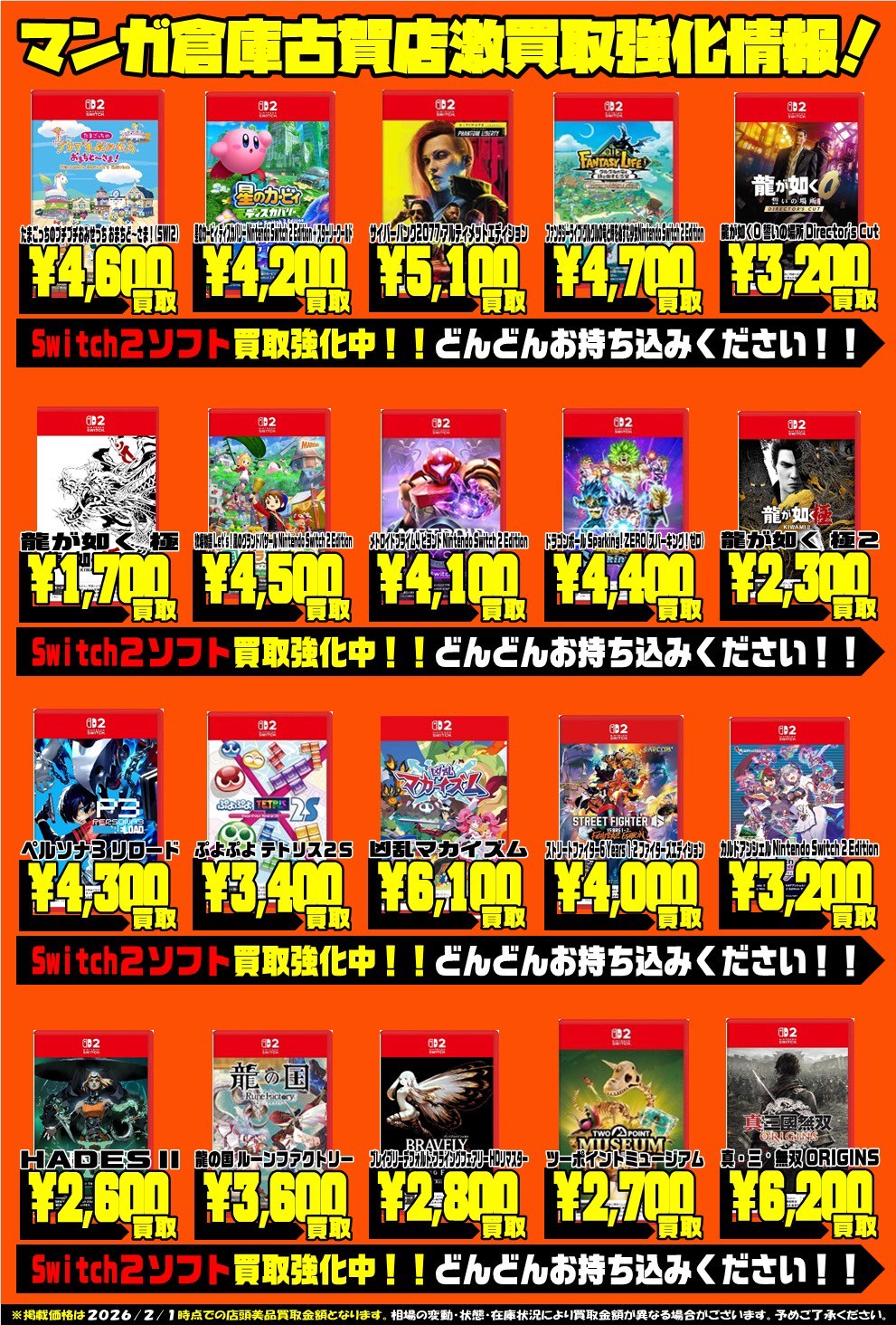 Switch、Switch2ソフトの買取チラシを更新しました‼️