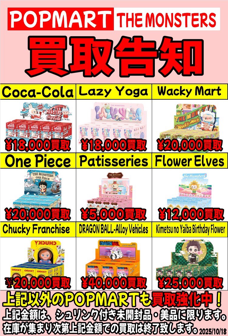 POP MART、怒涛の買取ラッシュ‼️💨 #POPMART #SKULLPANDA #LABUBU #DIMOO #HIRONO #アートトイ #スカルパンダ #ラブブ 買取りました! 買取情報 おもちゃ 2025年10月25日 SKULLPANDA、LABUBU、DIMOO、HIRONO… 人気どころ一気に集結🔥 箱から世界観ダダ漏れです👀✨ アートトイ好きは見逃し厳禁‼️ ショーケース前で、たぶんみんな足止まります✨⁝(ᵒ̴̶̷᷄⌑ ᵒ̴̶̷᷅ )⁝ まだまだドンドン買い取りさせていただきます‼️是非とも当店までお持ち込みくださいませ‼️ 関連
