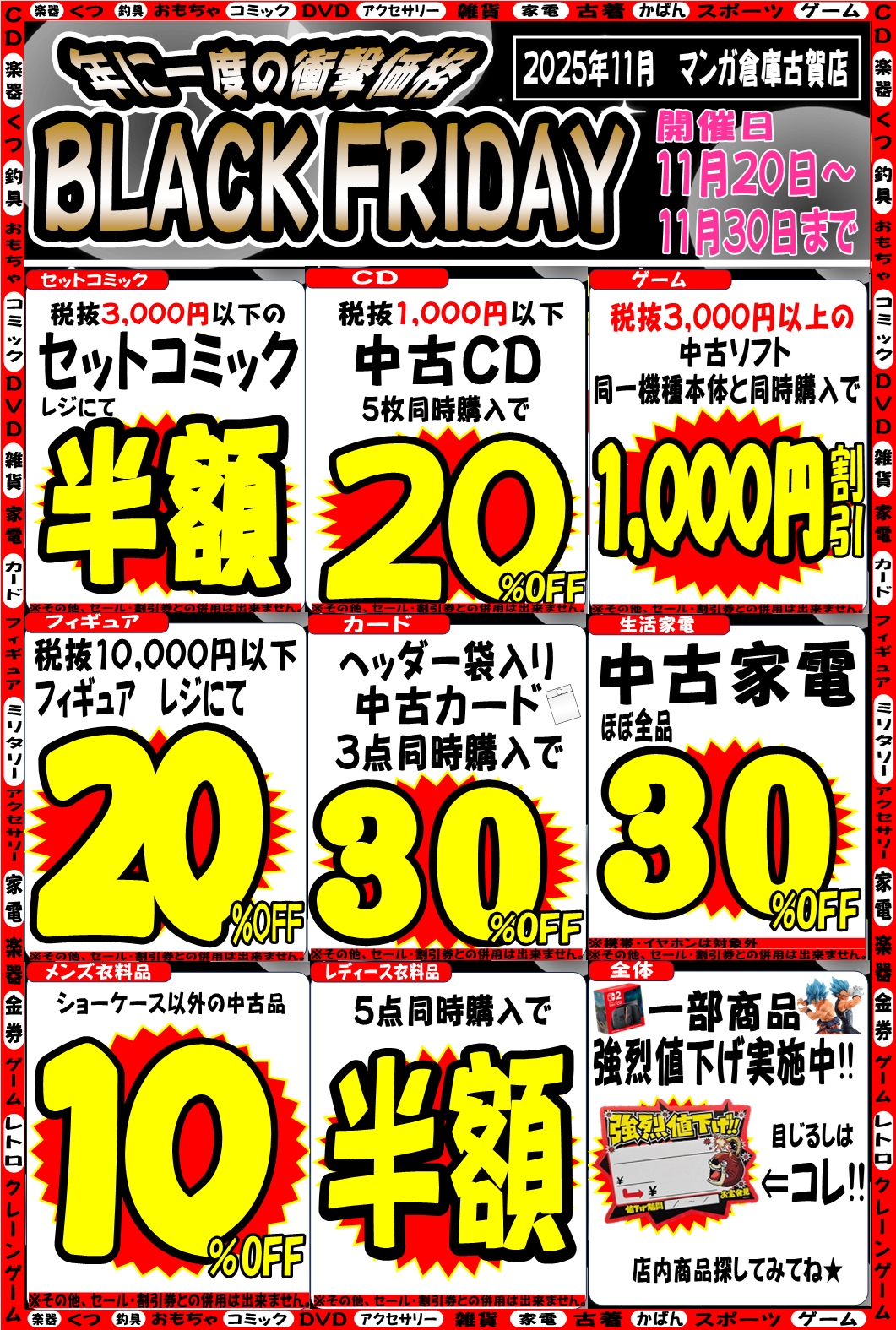 ★11月20日~11月30日限定‼年に1回のブラックフライデーセール実施中★