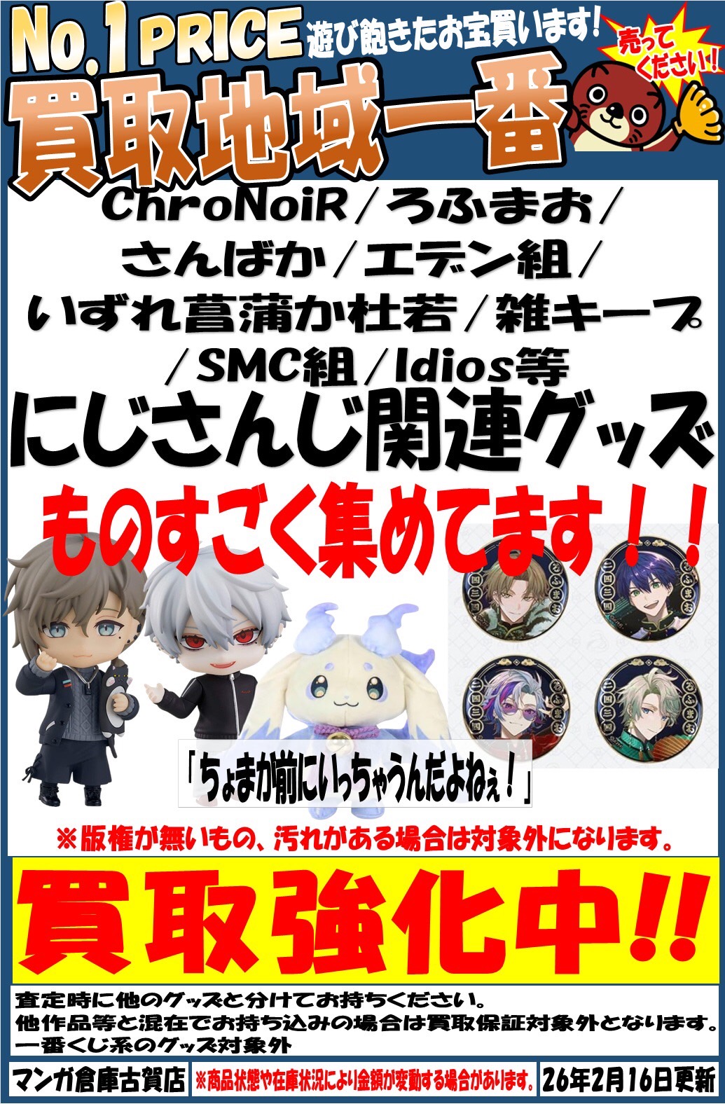 にじさんじグッズ買取強化します❗️ 買取情報 おもちゃ 2026年2月16日 多くの人気ライバーがいるにじさんじのグッズの買取強化をします❗️ 缶バッジやねんどろいど、にじぱぺっとなど幅広く買取します‼️ 是非マンガ倉庫古賀店へお持ち込みください‼️ ※2026/2/16 現在の価格となります。 在庫状況などによってお値段が変動いたします。予めご了承ください。 **************** こちら↓もぜひチェックしてみてくださいね♪(*´▽`*) ・最新の買取情報はこちら ・最新のイベント情報はこちら 関連