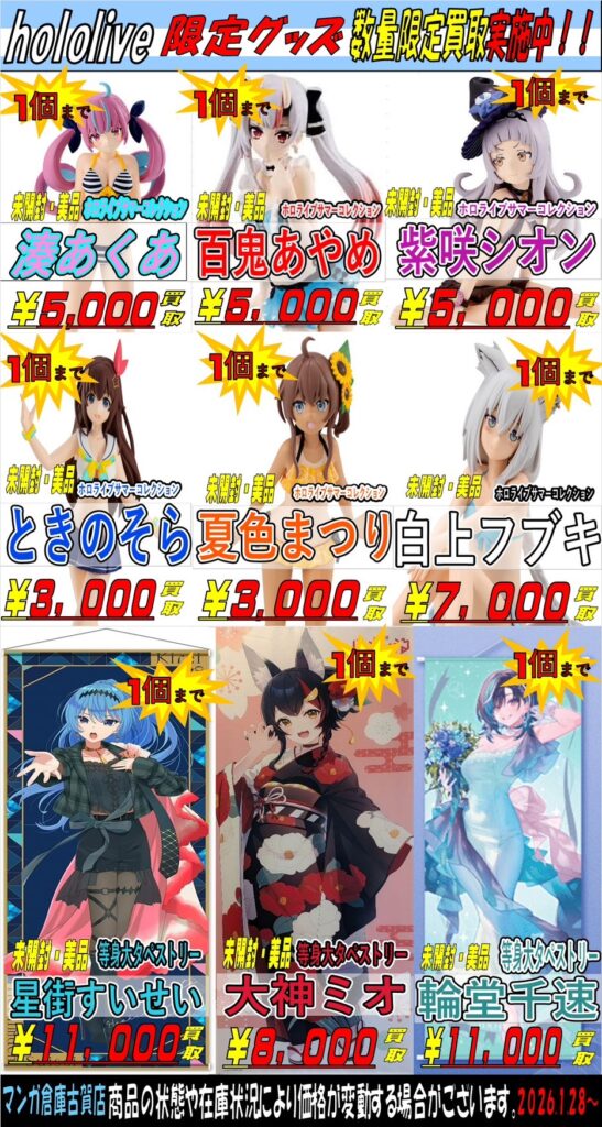 最新プライズフィギュアの買取情報です。 各タイトル 各3個限定 にて買…