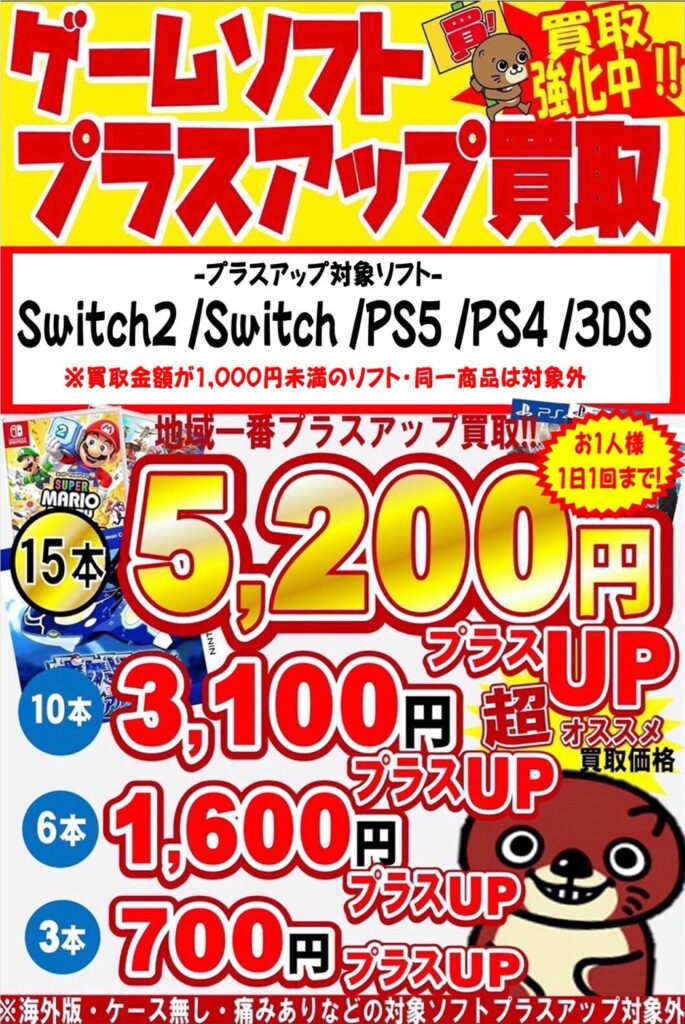明日3月2日からゲームソフトのプラスアップ買取を実施します‼…
