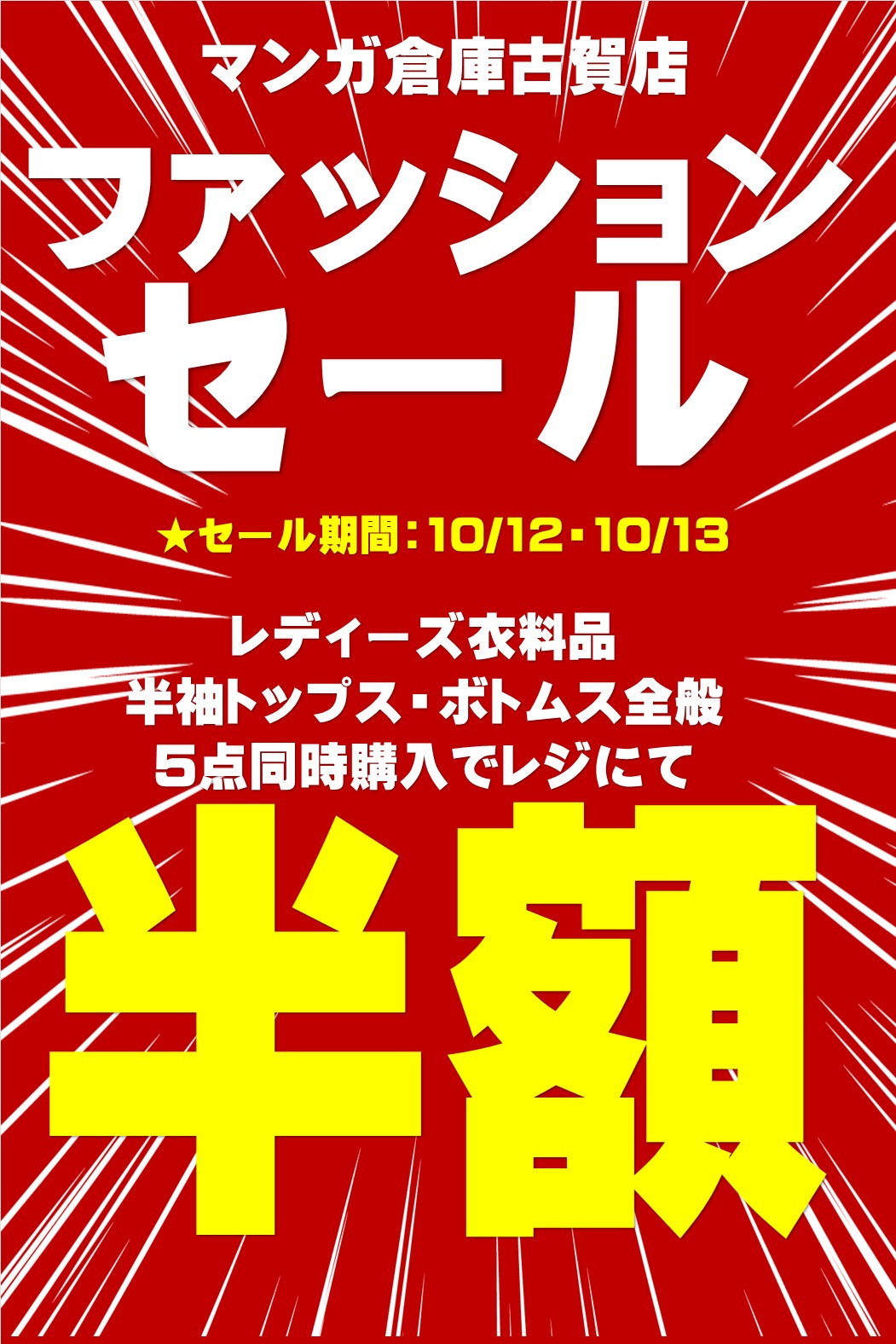 ファッションセール開始‼◆セール期間 10/12(日)・10/13(月) 未分類 2025年10月12日 ファッションセール開始‼ ◆セール期間 10/12(日)・10/13(月) ◆対象 ☆メンズ衣料品☆ 半袖トップス・ハーフパンツ ⇒ レジにて 20%OFF‼ ※ショーケース内対象外 ☆レディース衣料品☆ レディース衣料品 半袖トップス・ボトムス全般5点同時購入で レジにて 半額‼ 買うなら今がチャンス‼ 古着・中古衣料品買うならぜひマンガ倉庫古賀店へ お越しくださいませ(^^♪ 関連